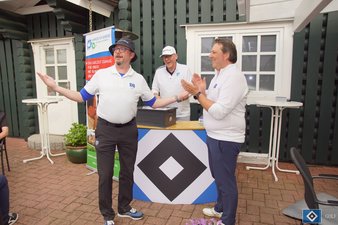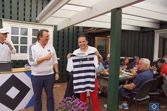 Nach intensiven 18 Löchern trafen alle Mitglieder wieder am Clubhaus ein. Auf der Terrasse wurde nach und nach die traditionellen Haseldorfer Currywurst (oder Penne Pesto) serviert. Dabei gingen Kurt und Timo zum nächsten Programmpunkt über und versteigerten HSV-Golf Produkte zu Gunsten des guten Zwecks.