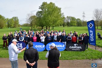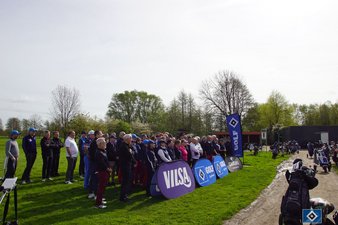 Die noch aufrechterhaltene Sperre der Driving Range (Sammeln der Bälle wegen des tiefen Bodens nicht möglich) sorgte dafür, dass sich die Teilnehmergruppe vor dem Start rund um das Übungsgrün konzentrierte. Damit war es auch nicht schwer, ab 10:20 Uhr das Teilnehmerfeld vor der Terrasse zusammen zu rufen und die Golfsaison des HSV offiziell zu eröffnen.
