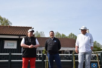 So fand sich dann das Orgateam zusammen mit einem Vertreter von Hände für Kinder e.V. am 13.04. am Clubhaus ein. Der Wetterbericht sollte recht behalten und es wurde ein sonniger und recht warmer Tag.