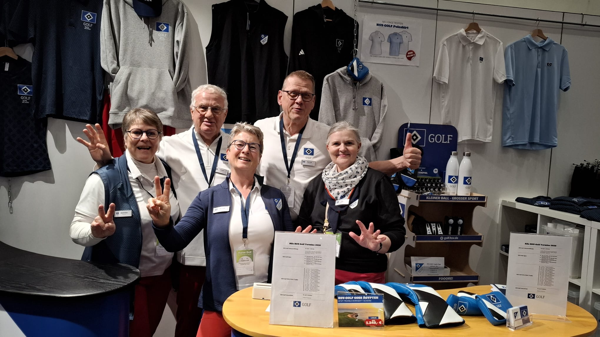 Uwe, Maik, Ute, Thomas und Klaus begrüßten am Samstag viele Besucher:innen und stellten sich allen Fragen rund um Golf im HSV e.V.