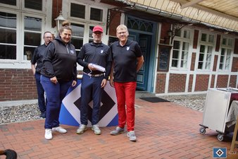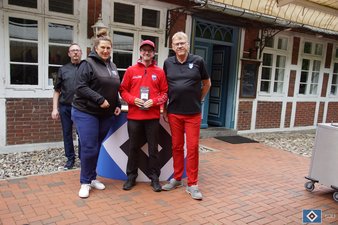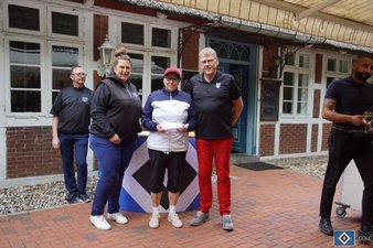 Die mit viel Applaus bedachten Sieger:innen freuten sich über HSV-Schlägerhauben und Handschuhe, Apfelbrand von platzeigenen Apfelbäumen, Greenfee-Gutscheine für Buxtehude und Soltau, HSV-Toaster, wertige Einkaufsgutscheine von Castan-Golf und trafen sich zum Siegerfoto vor dem historischen Clubhauseingang.