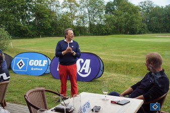 Nachdem der Hunger weitestgehend gestillt war, wurden auch die Ergebnislisten vom Sekretariat gebracht, was mit prompter Unruhe quittiert wurde. Zeit für Timo alle anwesenden noch einmal herzlich zu begrüßen und Dankesworte an das Helferteam, den Club und die Sponsoren zu richten. Auch Jens Geßler, Präsident des GC am Donner Kleve, begrüßte alle Teilnehmenden und bedankte sich für die Turnierausrichtung und Partnerschaft mit HSV-Golf.