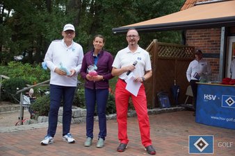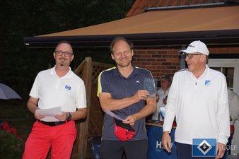Unter Applaus und Jubel startete die Siegerehrung des HSV-GOLF Bad Bevensen Cup. Die Siegerinnen und Sieger freuten sich über die von unserem Partner VILSA-Brunnen zur Verfügung gestellten Sachpreise (Sporttaschen, Umhängetaschen und Schirme), sowie über Produkte aus dem HSV-Fanshop, insbesondere unsere Gäste vom Hafen und von der Weser. Die Gewinner der Sonderwertungen erhielten einen Prosecco vom Golfclub Bad Bevensen.