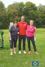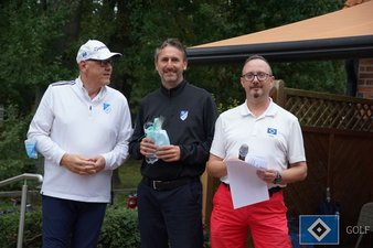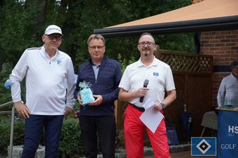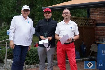 Zum Finale war noch einmal fast das komplette Team anwesend. Ute, Uwe und Olli, die gemeinsam seit Juni den Ablauf der After Work Trophy sichergestellt haben. Zudem in Hermann A. der bisherige Leiter des HSV Golf-Clubs und mit Kurt S. sein frisch gewählter Nachfolger. Timo in seiner Funktion als Abteilungsleiter Golf moderierte die Siegerehrung an und wurde dabei tatkräftig vom gesamten Team unterstützt.