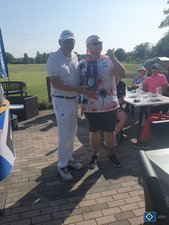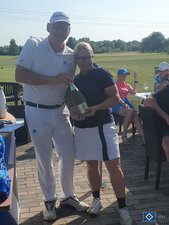 Begonnen wurde mit der Ehrung der Sonderwertungen Longest Drive und Nearest to the Pin. Für die Damensiegerinnen (Ivonne E., Kriemhild S.) gab es eine Magnum-Flasche Sekt, für die siegreichen Herren (Kenneth O., Oliver R.) eine Riesenflasche Flens. Danke an Frank für die Bereitstellung.