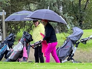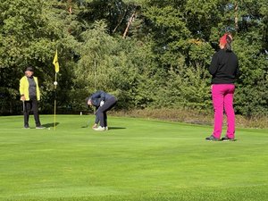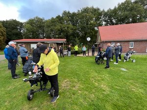 Es erfolgte eine kurze Einweisung zu den wichtigsten Golfregeln und los ging es. Man spürte bei allen Teilnehmern, die hohe Konzentration und die Spielfreude mit dem kleinen weißen Ball. Was erstaunlich war, nach dieser langen Trockenheit und der sehr festen Bodenober-fläche, hatten alle Teilnehmer keine Probleme mit den jetzt wieder normalen Platzver-hältnissen. Der Ball machte nach dem Aufkommen keine Meter mehr, wie man es über Wochen kannte. Er blieb einfach liegen. Viele Fragen und Klärungen, konnten auf der Runde dann sofort von den Zählern beantwortet werden und so kamen alle sehr zufrieden wieder im Clubhaus zusammen. Vor der Siegerehrung führten alle Teilnehmer dann noch sehr intensive Fachgespräche, mit aktuellen Beispielen aus dem Vormittag.
