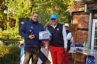 Noch vor dem obligatorischen Siegerfoto verlosten Frauke und Kurt diverse weitere Preise über die HSV-Golfball Tombola. Nachdem Andreas C einer dankbaren Golferin gleich zweimal ihre Pitch hinterher getragen hatte, blieb dieser auch diesses Mal nicht ohne Preis. Dankend gab sie ihren Tombolagewinn wie viele andere Mehrfachgewinner weiter.
