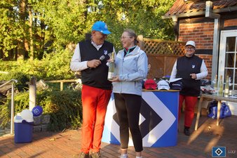 In Nettoklasse B reichten Christel N 32 Punkte für Platz 3 und Thomas W einer mehr für den 2.Platz. Sieger Netto B wurde Benjamin Z mit 35 Punkten auf seinem Heimatplatz. In Klasse A erreichte unser Longest-Drive-Gewinner mit 29 Punkten Platz 3 punktgleich hinter Sebastian V, welcher den heutigen Familienerfolg komplettierte. Sieger mit starken 38 Nettopunkten wurde Frank M, während Inke V mit 36 Punkten sich dem Doppelpreisausschuss beugen musste. Bruttosiegerin mit 16 Punkten und 6 Punkten Vorsprung wurde Inke V, während sich bei den Männern Frank M und Matthias S auf ihrem Heimatplatz beide ebenfalls 16 Punkte erspielten, letzterer im Stechen jedoch die Nase vorne hatte.